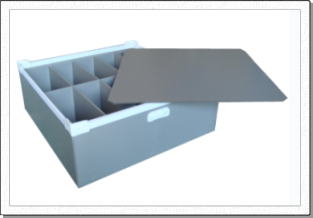 プラダンケース&のせ蓋 スミセラーの底一体型仕切(側部は超音波溶着)